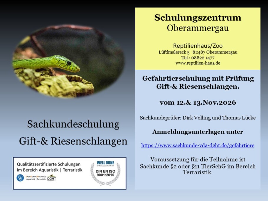 Gefahrtierschulung Gift-& Riesenschlangen mit Prüfung